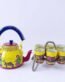 Handicraft kettle set wooden tray and 6 glass with Iron Stand Lemon Yellow