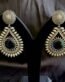 Brass Paan Shape Blue Stone Earrings