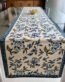 A garden-inspired hand block printed cotton table runner featuring delicate floral vines in soothing blue tones.