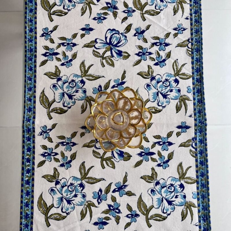 An indigo floral masterpiece in cotton, this block printed table runner evokes the calm charm of blooming gardens and heritage artistry.