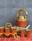 Handicraft kettle set and wooden tray 6 glass with Iron Stand Red Gold