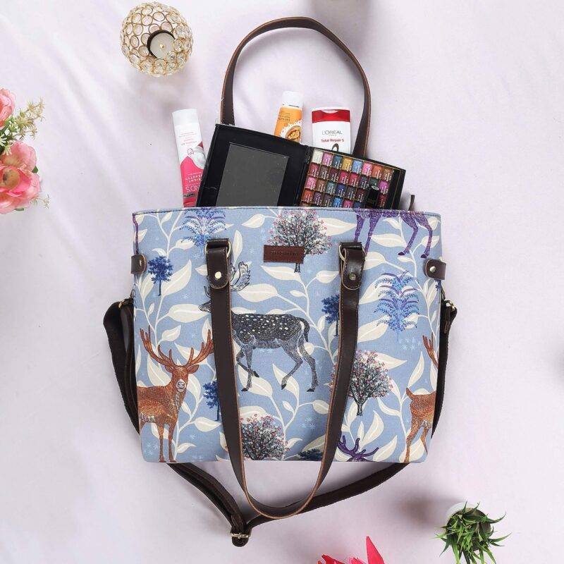 Looking for stylish and spacious tote handbags to carry your valuables to the office? Look no further! Our Handmade Deer Motif Stylish Office Bag is the perfect choice for you. It can be worn as a tote or a shoulder bag. Small essentials such as data cables, keys, coins, and so on can be stored in the outside zip pocket. Cotton is used to line the inside.