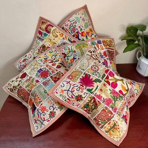 Khambadiya Patchwork Cushion Cover Set of 5: Handcrafted Elegance from Barmer, Rajasthan