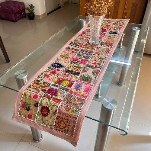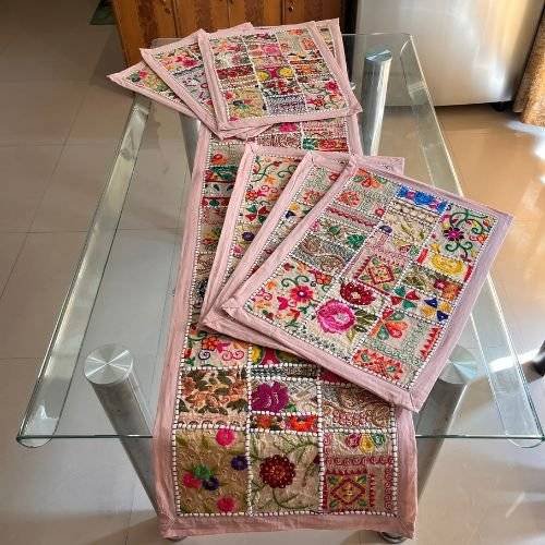 Khambadiya Patchwork Table Runner and Mat Set: Handcrafted Elegance from Barmer, Rajasthan