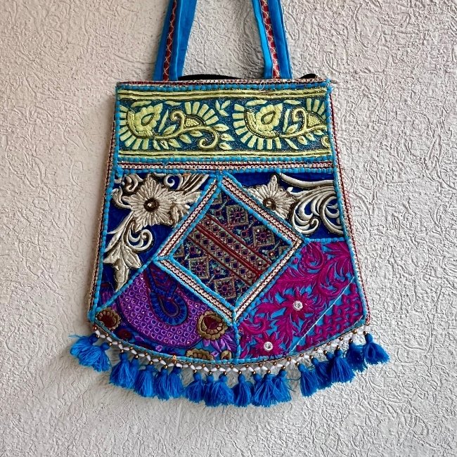 Step into a world of color and craftsmanship with the banjara bag, a handmade bag that effortlessly enhances your style quotient. This beautiful bag features intricate patchwork and embroidery designs, crafted with different colorful threads on both sides, making it a true work of art.