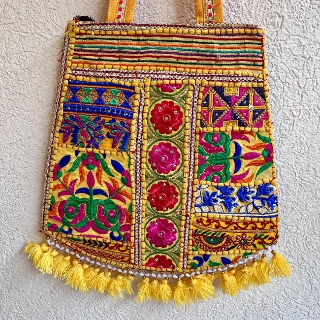 Step into a world of color and craftsmanship with the banjara bag, a handmade bag that effortlessly enhances your style quotient. This beautiful bag features intricate patchwork and embroidery designs, crafted with different colorful threads on both sides, making it a true work of art.