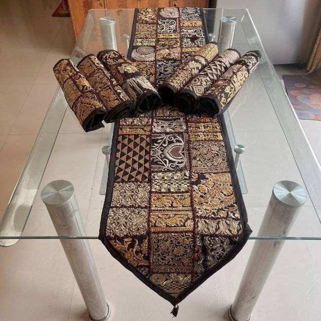 Be the first to review “Gold N Black Symphony Table Runner and 6 Mats Set”