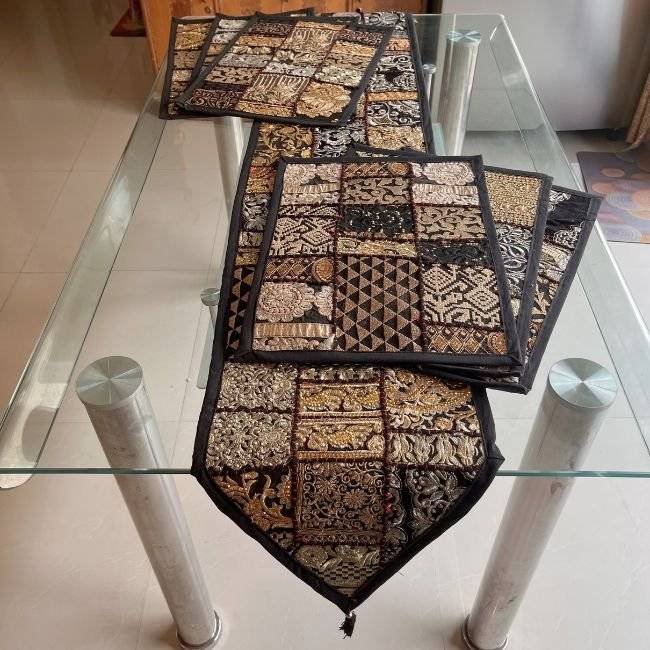 Khambadiya Patchwork Table Runner and Mat Set: Handcrafted Elegance from Barmer, Rajasthan