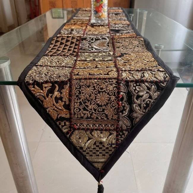 This gorgeous table runner and mat set is more than just a dining accessory; it’s a statement piece that adds warmth, style, and elegance to any room in your home. Whether placed on your dining table, coffee table, or as a decorative piece in your living room, it enhances the overall aesthetic with its traditional charm and artistic flair.