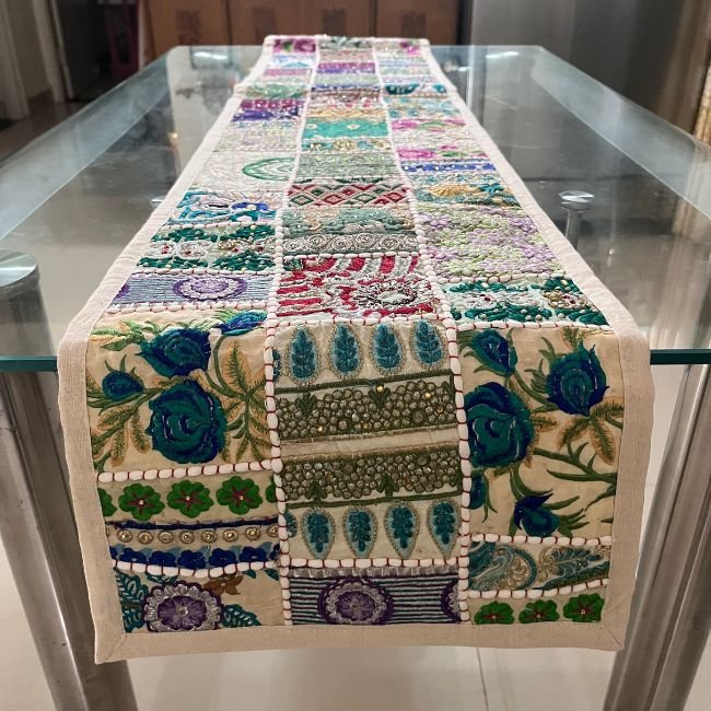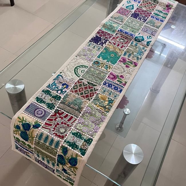 Khambadiya Patchwork Table Runner and Mat Set: Handcrafted Elegance from Barmer, Rajasthan