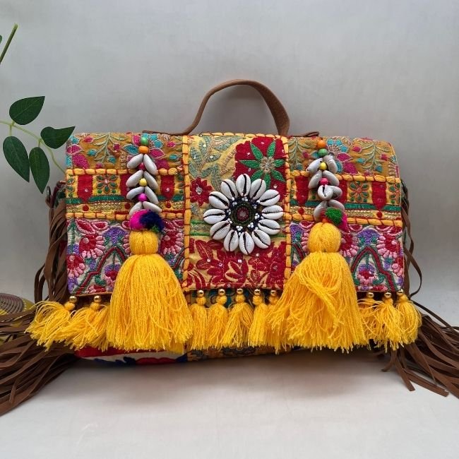 Imagine walking into a room, your outfit perfectly complemented by the banjara Bag. Feel the admiration and compliments as people notice the detailed craftsmanship and unique design. This bag is more than just a way to carry your belongings; it's a way to express your style and personality.