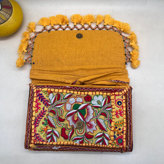 Step into a world of color and craftsmanship with the banjara sling bag, a handmade sling bag that effortlessly enhances your style quotient. This beautiful bag features intricate patchwork and embroidery designs, crafted with different colorful threads on both sides, making it a true work of art.