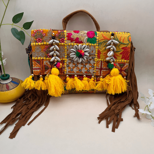 Imagine walking into a room, your outfit perfectly complemented by the banjara Bag. Feel the admiration and compliments as people notice the detailed craftsmanship and unique design. This bag is more than just a way to carry your belongings; it's a way to express your style and personality.