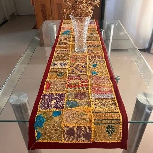 Place this beautiful handmade embroidery patchwork table runner on your dining table, coffee table, or even as a decorative piece in your living room. Its versatile design makes it a delightful addition to any space, impressing both you and your guests with its sheer beauty and craftsmanship.