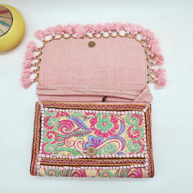 Step into a world of color and craftsmanship with the banjara sling bag, a handmade sling bag that effortlessly enhances your style quotient. This beautiful bag features intricate patchwork and embroidery designs, crafted with different colorful threads on both sides, making it a true work of art.