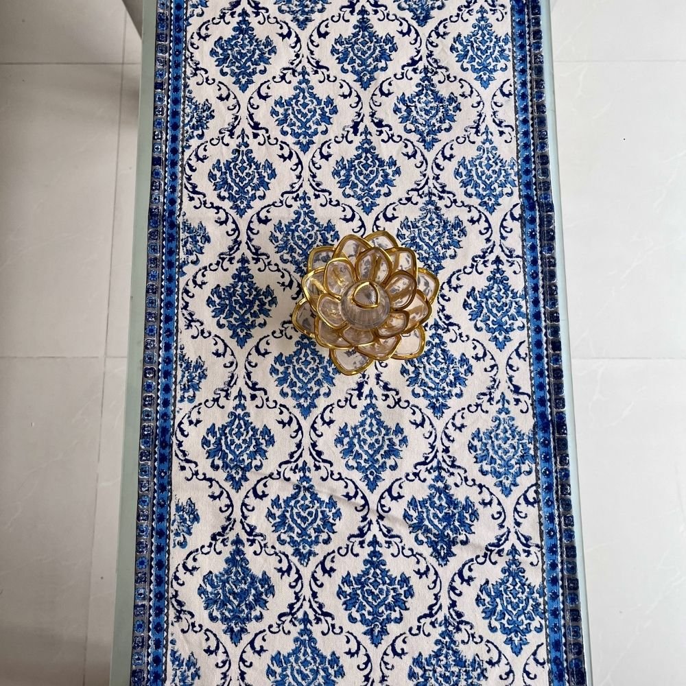 Classic indigo buti patterns block printed on cotton table runner — a serene blend of tradition and everyday elegance.
