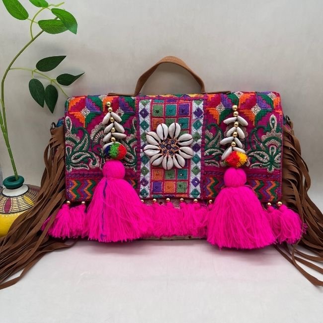 Imagine walking into a room, your outfit perfectly complemented by the banjara Bag. Feel the admiration and compliments as people notice the detailed craftsmanship and unique design. This bag is more than just a way to carry your belongings; it's a way to express your style and personality.