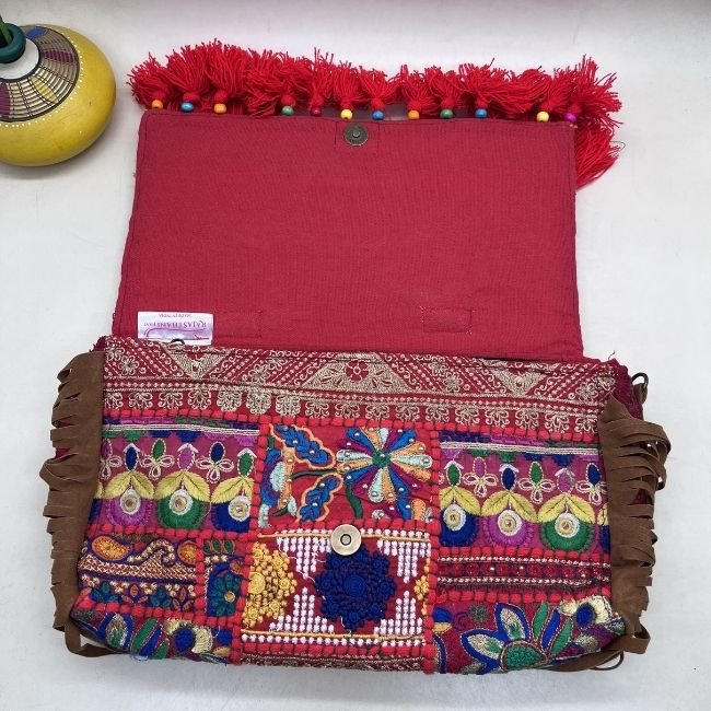 Introducing the RaahiRoop Banjara Bag a handcrafted masterpiece blending traditional and modern embroidery. This spacious sling bag, adorned with intricate Rajasthani art, is perfect for weddings, festive parties, or everyday elegance. Elevate your look and personality with this unique accessory that complements both Indian and Western outfits.