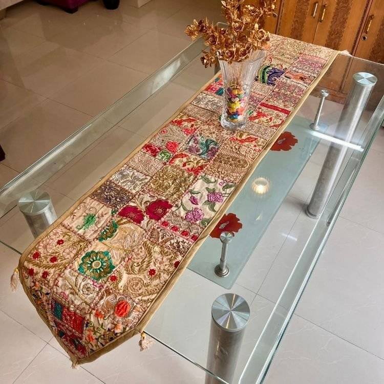 Khambadiya Patchwork Table Runner and Mat Set: Handcrafted Elegance from Barmer, Rajasthan