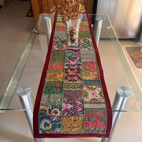 Place this beautiful handmade embroidery patchwork table runner on your dining table, coffee table, or even as a decorative piece in your living room. Its versatile design makes it a delightful addition to any space, impressing both you and your guests with its sheer beauty and craftsmanship.