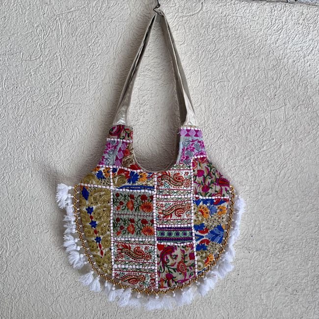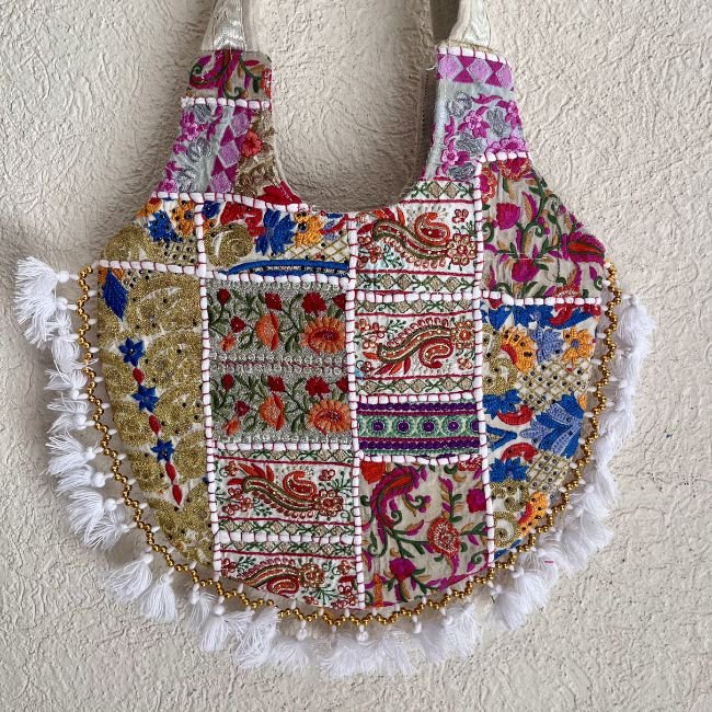 Step into a world of color and craftsmanship with the banjara bag, a handmade bag that effortlessly enhances your style quotient. This beautiful bag features intricate patchwork and embroidery designs, crafted with different colorful threads on both sides, making it a true work of art.