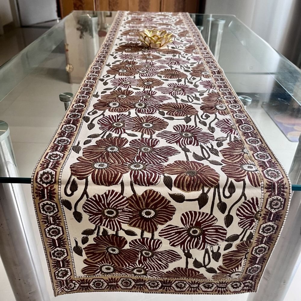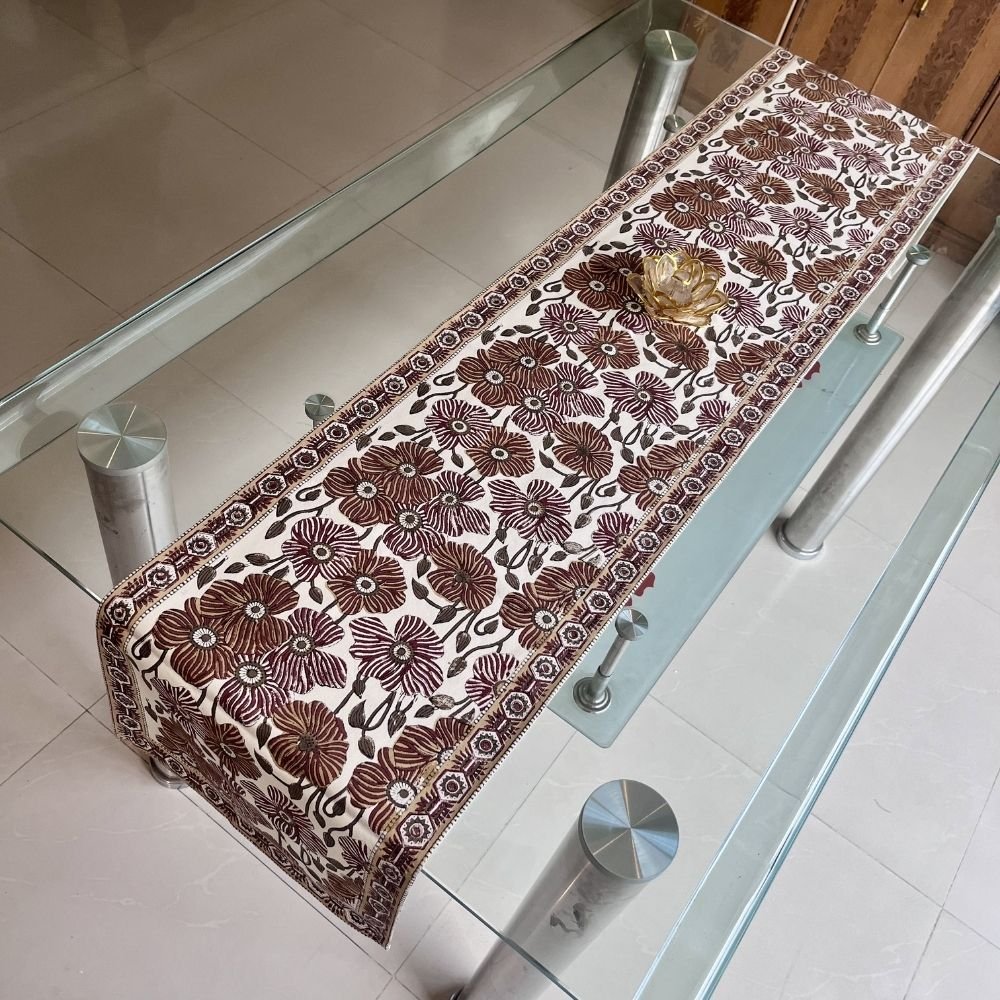 Rangmahal Rani Jaal Hand Block Printed Cotton Table Runner