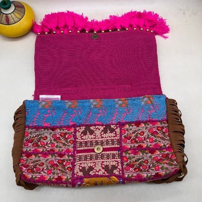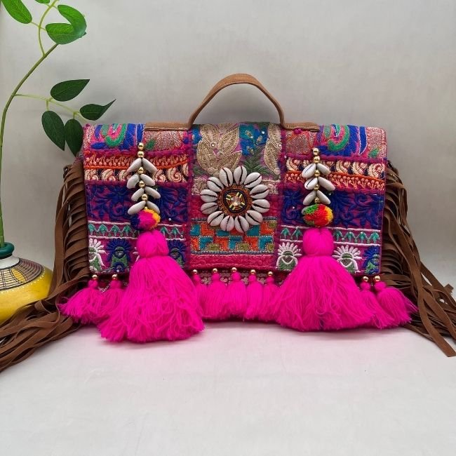 Introducing the TasselTales Banjara Bag a handcrafted masterpiece blending traditional and modern embroidery. This spacious sling bag, adorned with intricate Rajasthani art, is perfect for weddings, festive parties, or everyday elegance. Elevate your look and personality with this unique accessory that complements both Indian and Western outfits.